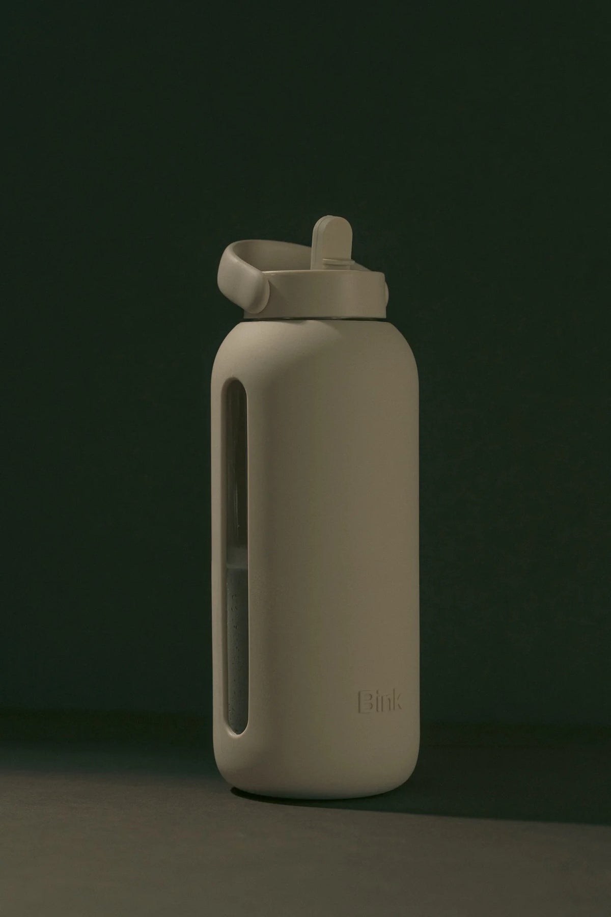The largest Bink bottle - 36oz (1 ltr+) with the all-new integrated flip-top cap for a cleaner, more convenient drinking experience. Made of borosilicate glass.
