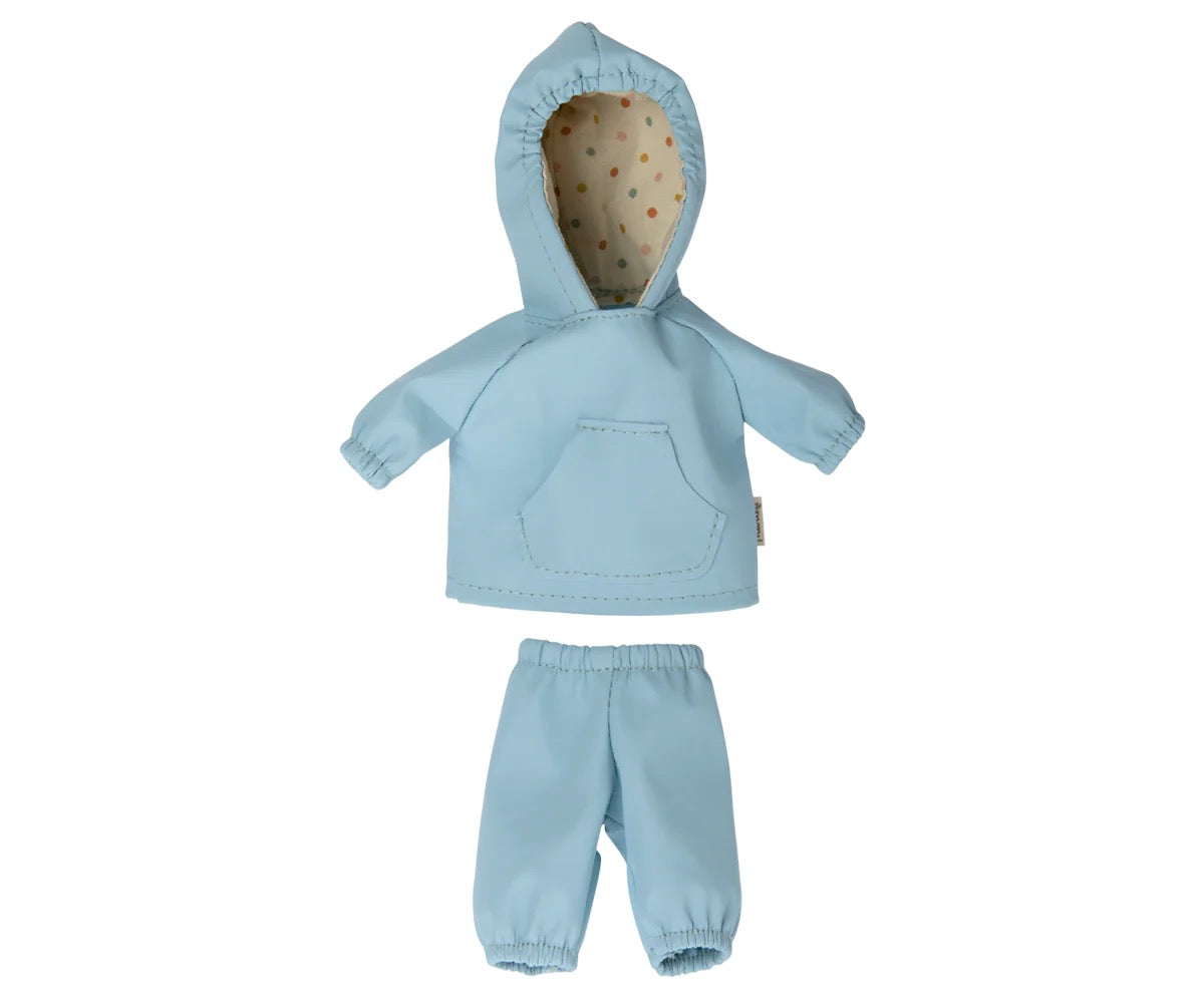 A beautiful set of rainwear that fits teddy junior. It will for sure keep him dry on rainy days. This set contains a jacket and a pair of pants.
