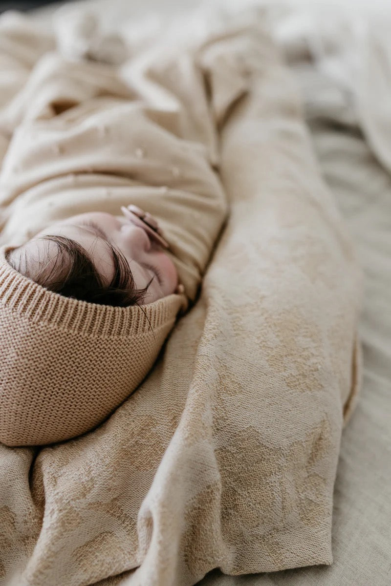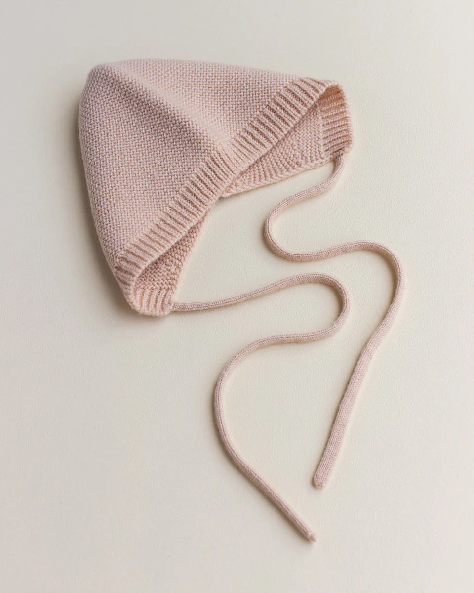 A soft seamless knitted bonnet made in 100% merinowool.
