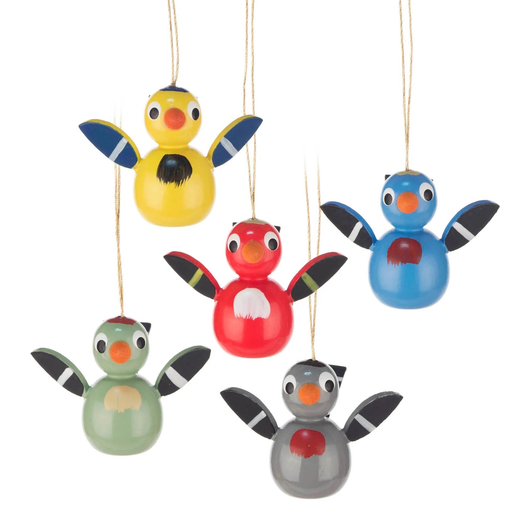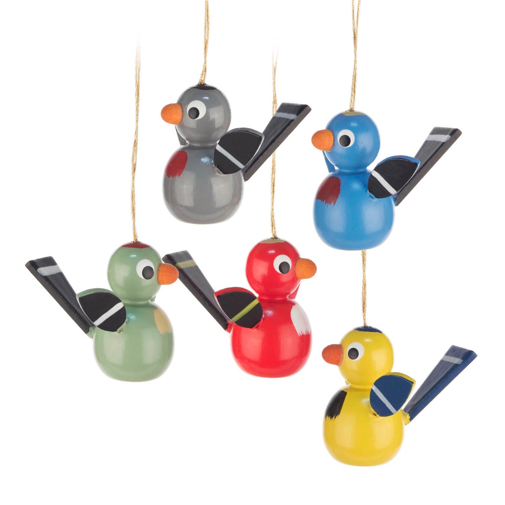Five Wooden Bird Ornaments